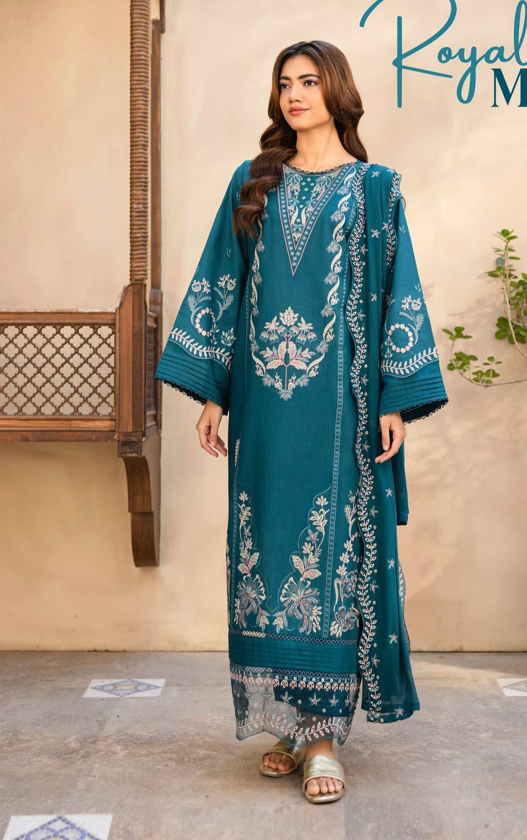 Front Embroidered Lawn Shirt Plain Back Embroidered Sleeves